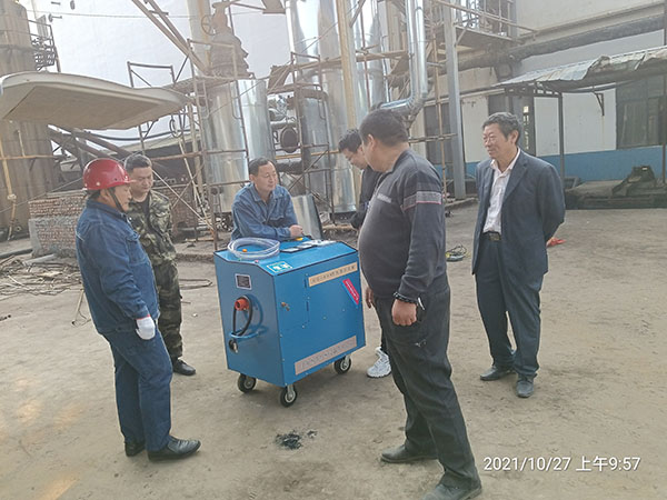2021年10月27日中午:河南省周口市沈丘縣周營鄉(xiāng)孔大橋東沈丘禾源糠醛有限公司范總和生產廠長馬家全的精心安排,現場研究,與我們河南都市機械設備有限公司田主任,竇經理,都紅植技術員溝通討論,發(fā)明了一款加粗直徑25毫米長度達到22米加長600型智能清洗機軟軸,解決了不用爬高15米的三層樓頂,直接在地平面就可以操作的新型設備,解決了每次吊起來再卸下來找人難,找吊車難的問題,還節(jié)省每次的費用2000元,既省費用又省時間,為糠醛行業(yè)的生產提高了效率!