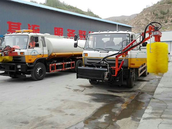 4、調(diào)整升降缸,伸縮臂缸,然后使刷滾擺動(dòng)更左端,使清洗位置恰當(dāng),開始進(jìn)行工作。